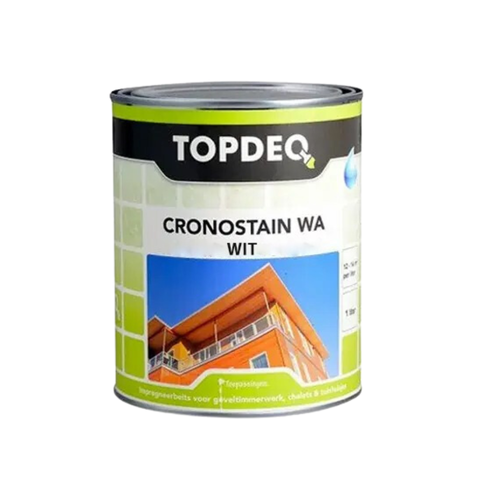 De Topdeq Cronostain WA RAL 9001 wit dekkend is een impregneerbeits waar wij fan van zijn. De impregneerbeits trekt heel goed in het hout waardoor hij makkelijk dekt. Al na 1 laag is het hout mooi wit!